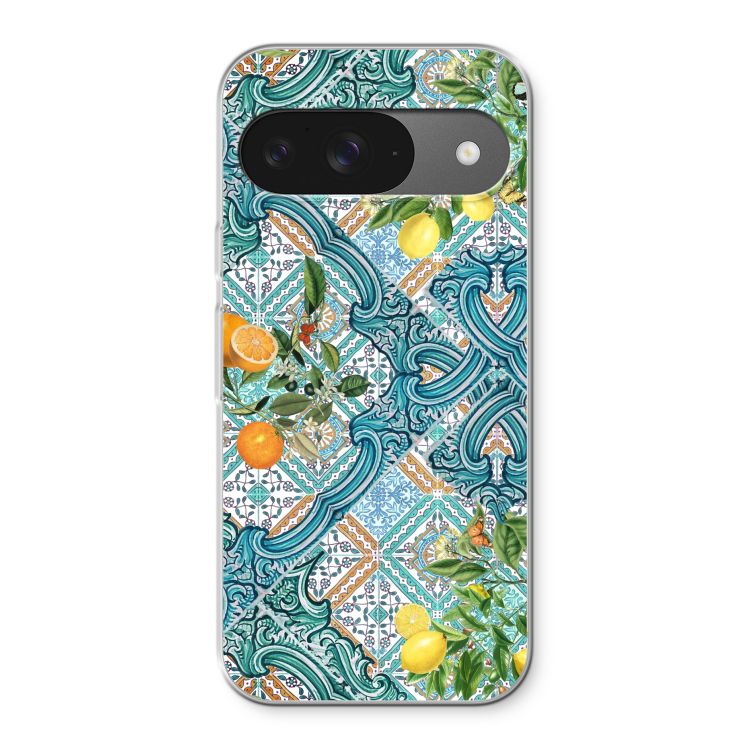 Google Pixel 9 hoesje - Blauwe tegels, citroenen en appelsienen