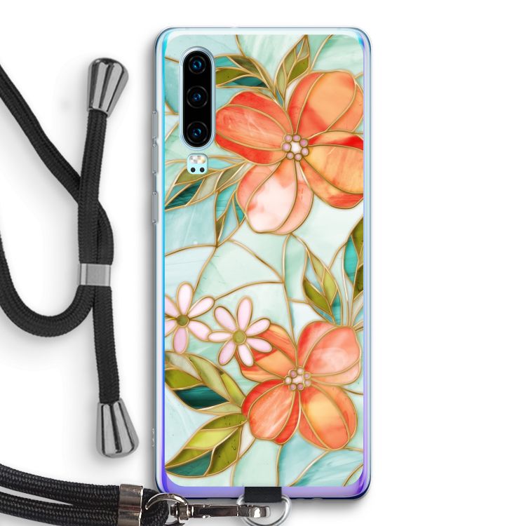 Huawei P30 hoesje - Oranje glas in lood bloem